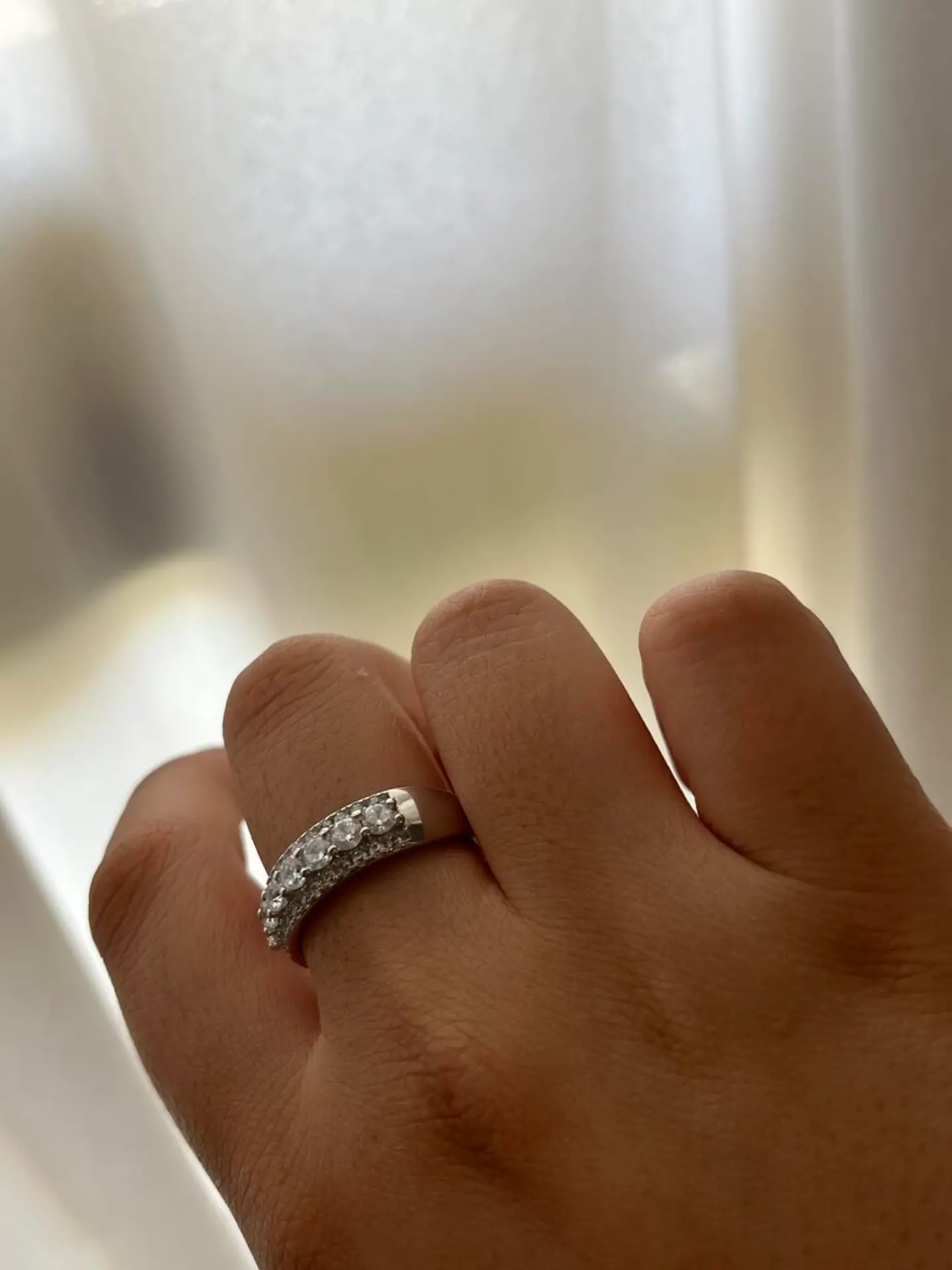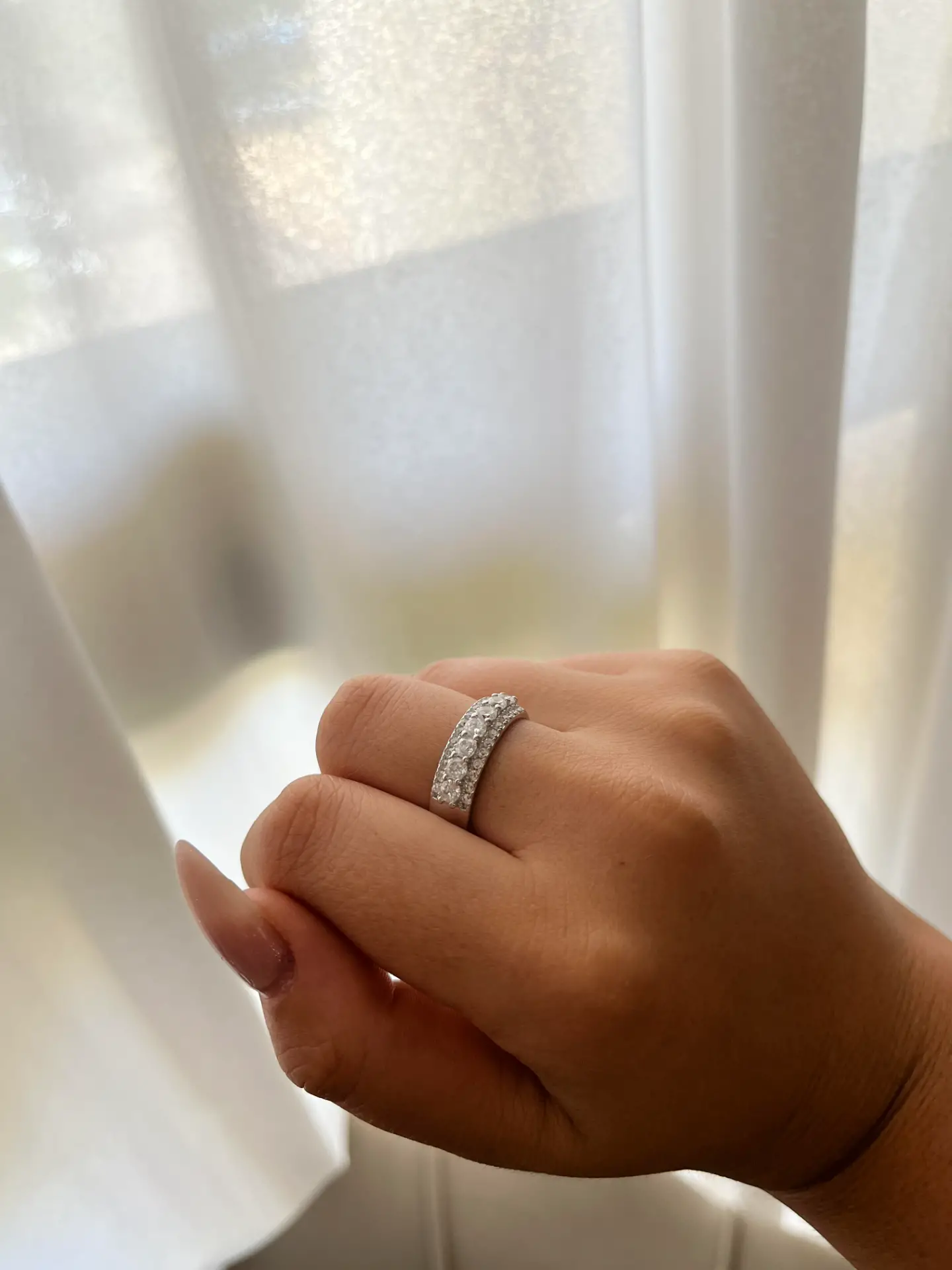 ✨ טבעת הכסף “אלגנס” היא הבחירה המושלמת לכל אישה שמחפשת לשדר יוקרה ואופנה. עשויה מכסף סטרלינג 925 איכותי ומשובצת בשורה כפולה של אבני זירקון נוצצות, הטבעת הזו מבטיחה להביא איתה נגיעה של זוהר לכל הופעה 🌟.
