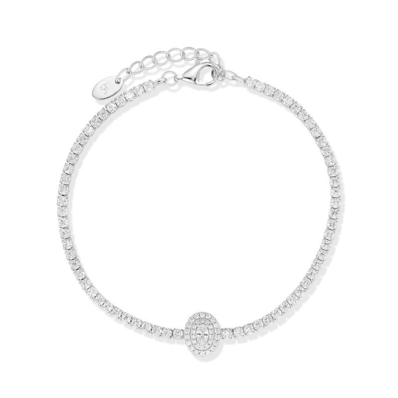 צמיד טניס עדין בשיבוץ אבנים רציף ✨, עם אלמנט מרכזי אובלי משובץ בצפיפות ליצירת ברק עשיר ומלא נוכחות.