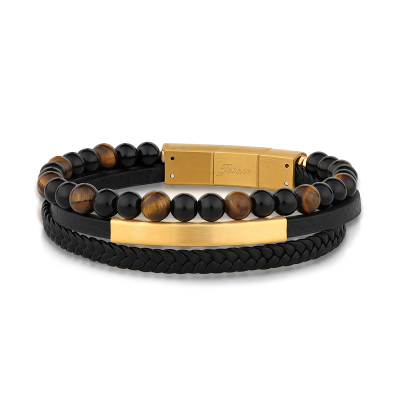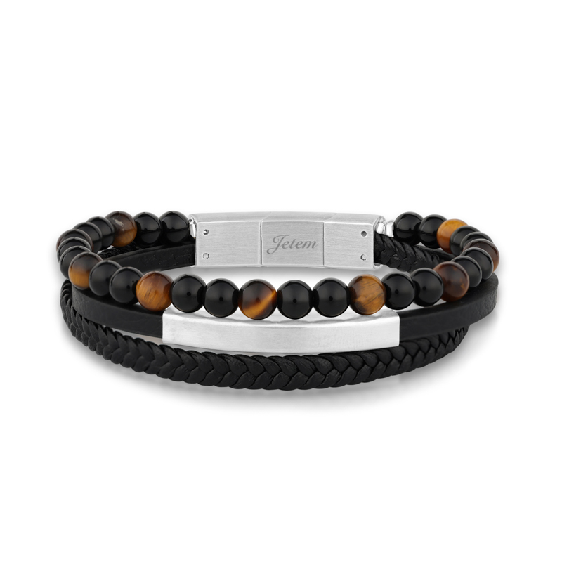 צמיד עור עם חרוזים עין הנמר לגבר JBM1002 JETEM