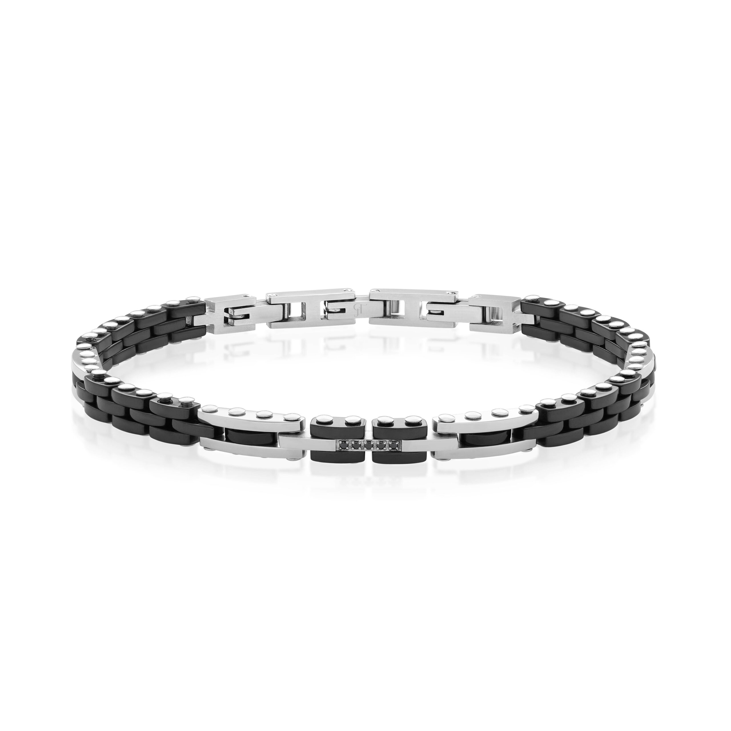 ✨ צמיד יוקרתי בעיצוב עכשווי, המשלב חוליות בצבע שחור מטאלי עם נגיעות כסף מבריקות. במרכזו אלמנט עדין המשובץ באבנים שחורות קטנות, המוסיף טאץ’ מתוחכם ומלא עוצמה. הצמיד משדר סגנון גברי, אלגנטי ונוכחות בולטת – הבחירה המושלמת ליום-יום וגם לאירועים מיוחדים.