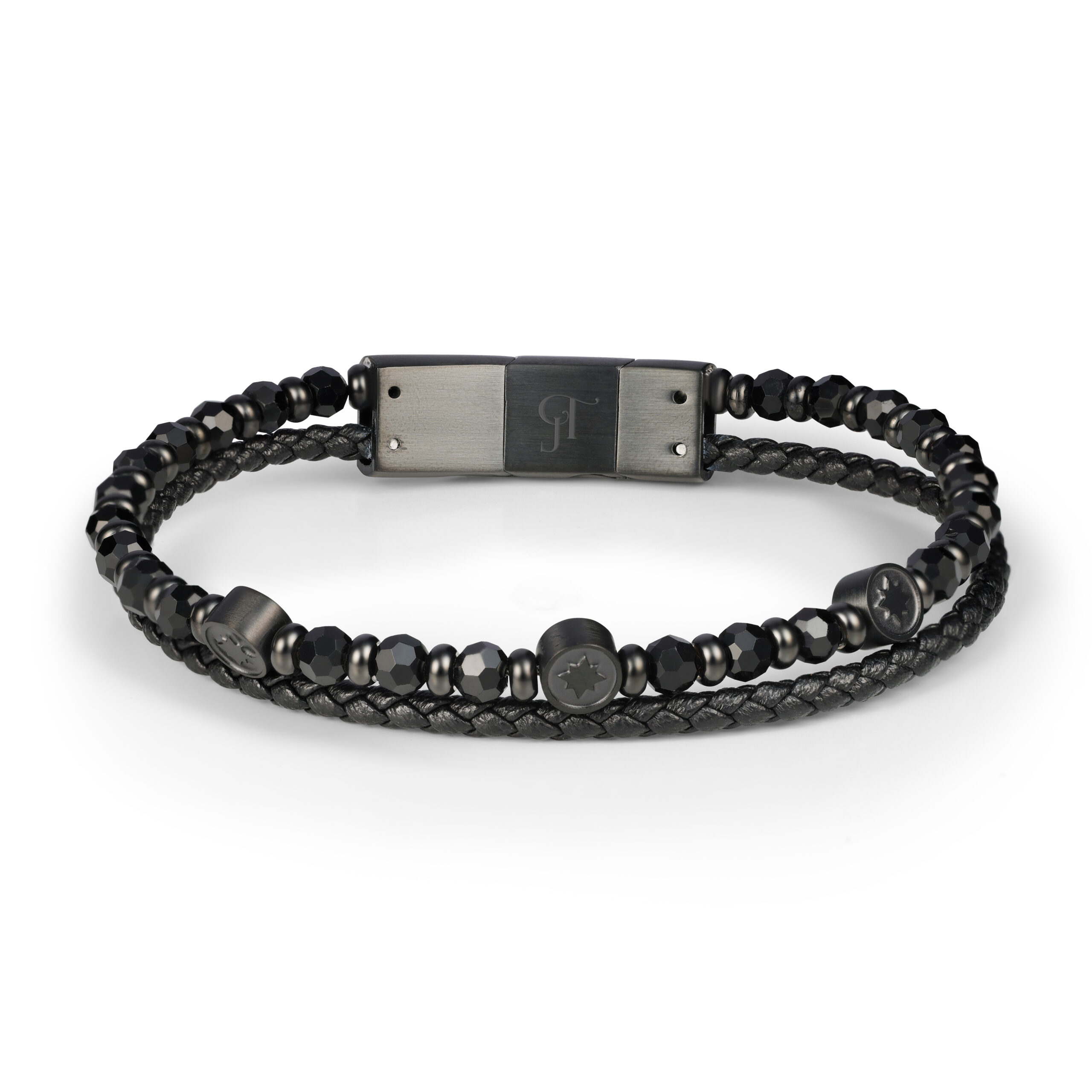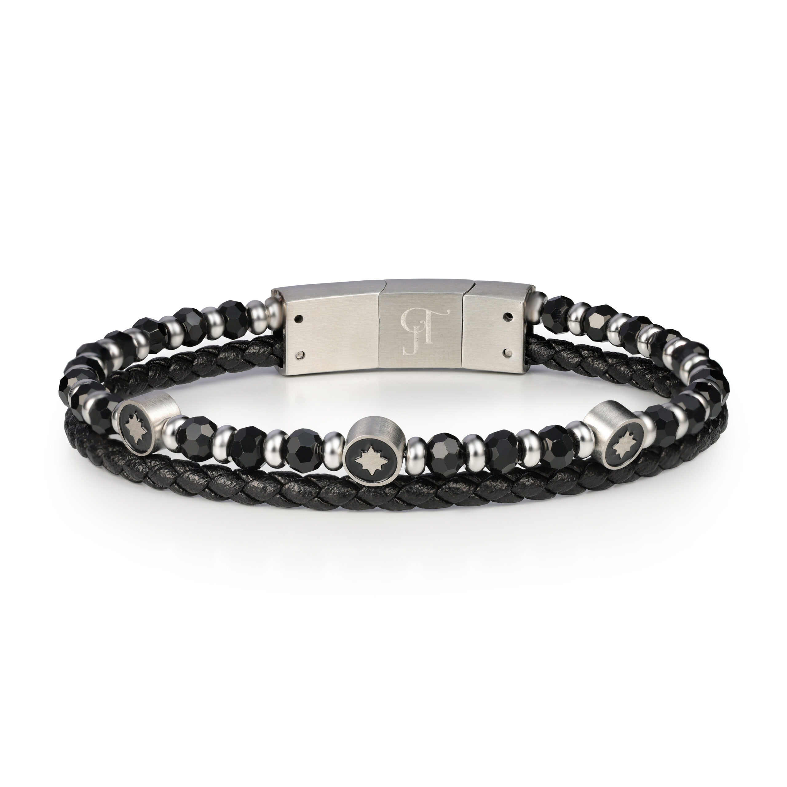 ✨ צמיד בעיצוב מרהיב המשלב בין אלגנטיות לעוצמה: ✔️ שילוב חרוזים שחורים וצמיד עור למראה קלאסי ומודרני בו זמנית. ✔️ מתאים לכל הופעה – קז’ואל או רשמית, ומשדר עוצמה וביטחון. ✔️ עשוי מחומרים איכותיים להבטחת עמידות ונוחות מירבית.