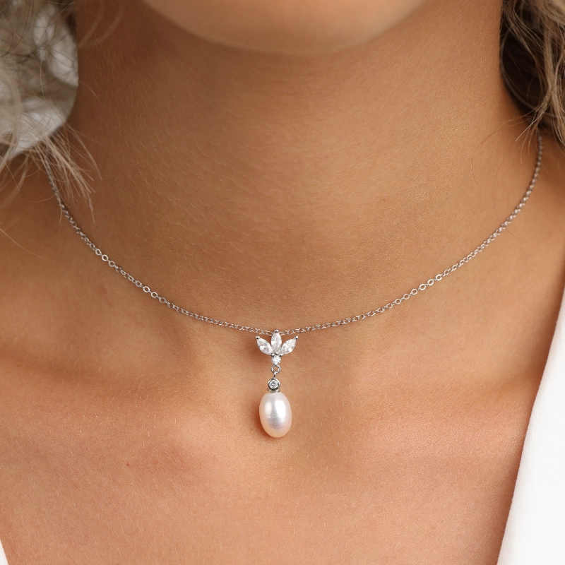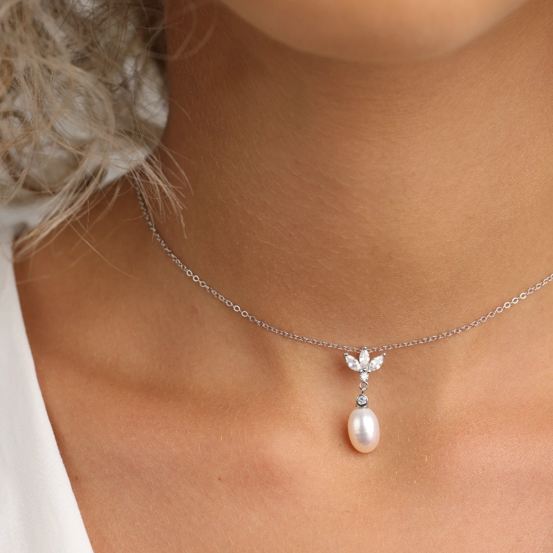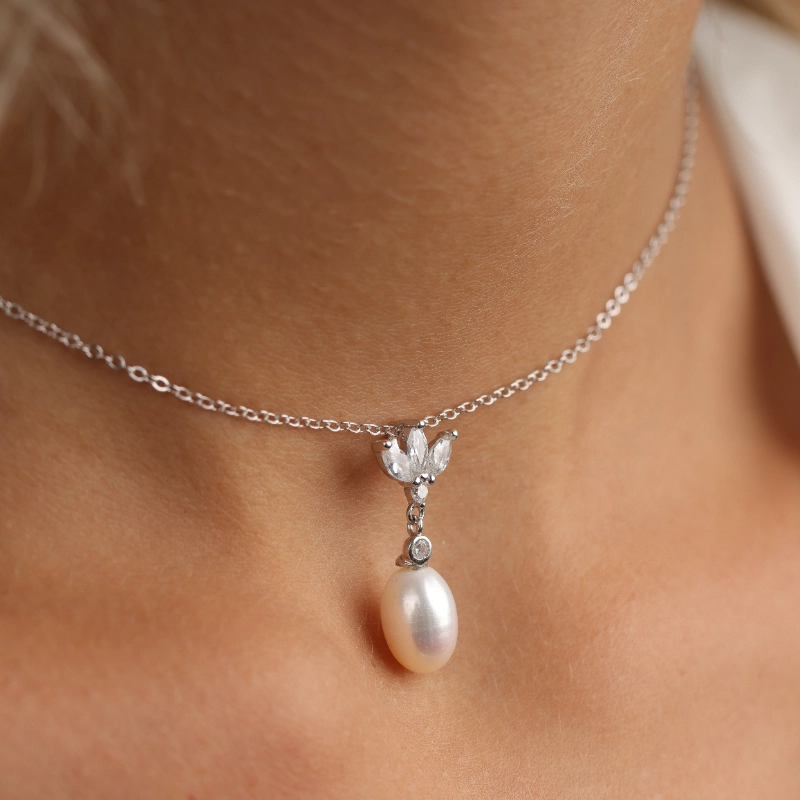שרשרת כסף 925 עם תליון פנינה ועלים משובצים זירקונים – יוקרה נשית ועדינות על-זמנית