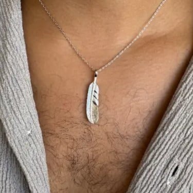שרשרת גבר – | תליון נוצה מכסף